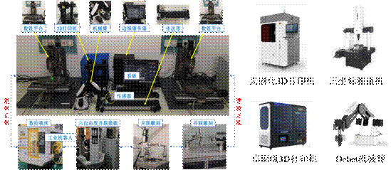 本团队拥有的相关实验设备包括:立式加工中心、光固化3D打印机、三坐标激光测量机、Delta并联机器人、桌面级3D打印机、Dobot机械臂/传送带等一系列科研设备,设备固定资产400余万元,可组建微型分布式智能制造系统实验平台,用于团队硕士生、博士生开展相关学术研究工作。