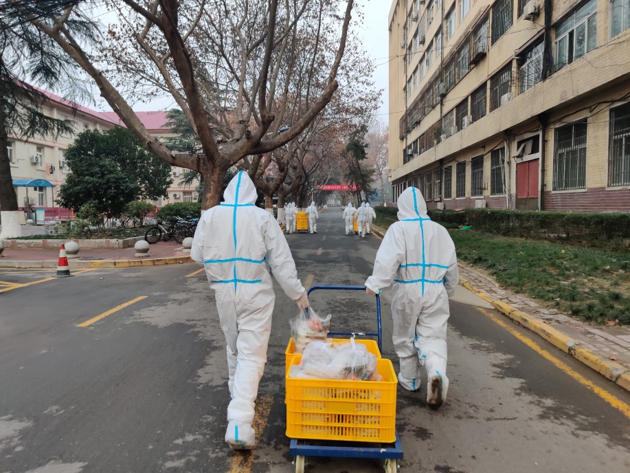 疫情下的本部南院家属院,风险等级最高。封控后,课题组老师主动参加疫情防控,参与菜、肉、粮、油分袋包装与配送,负责核酸检测登记与排队间距维持,确保了家属院核酸检测、物资配送、后勤保障、秩序维护等各项措施工作的持续推进。疫情终将退去,美好会如期而至。