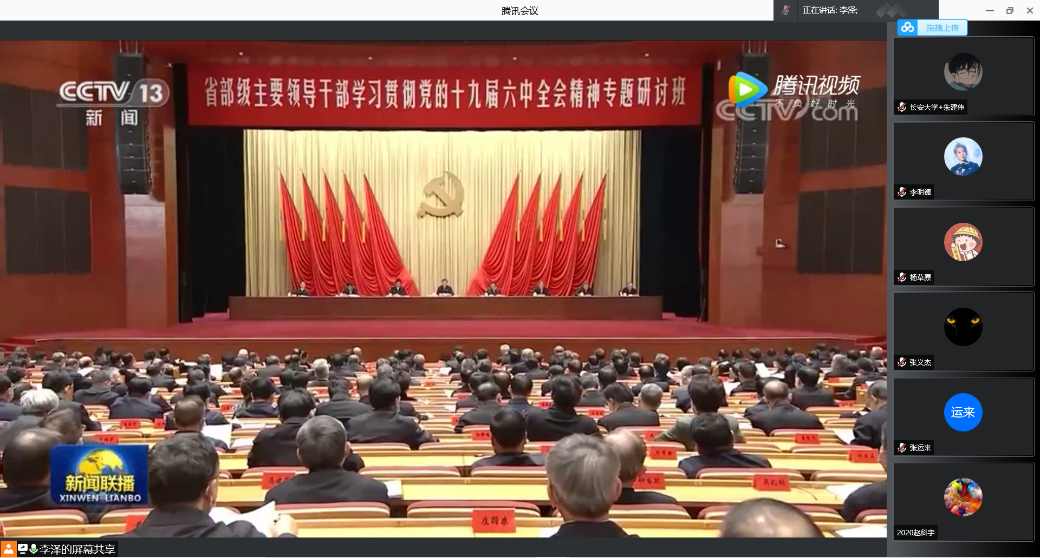 《省部级主要领导干部学习贯彻十九届六中全会精神专题研讨班》视频界面