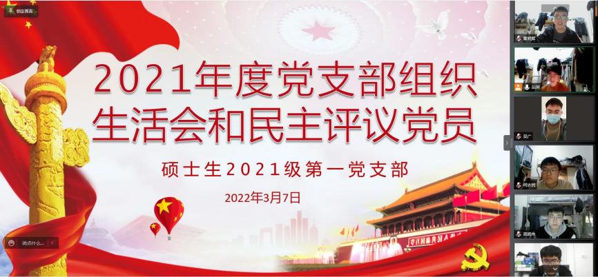 2022年3月7日晚19:00,91视频 硕士生2021级第一党支部线上召开了2021年度党支部组织生活会和民主评议会。会议应到25人、实到25人,符合开会人数。此次会议由支部书记田珂主持。