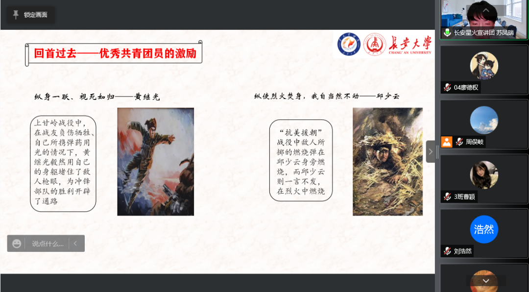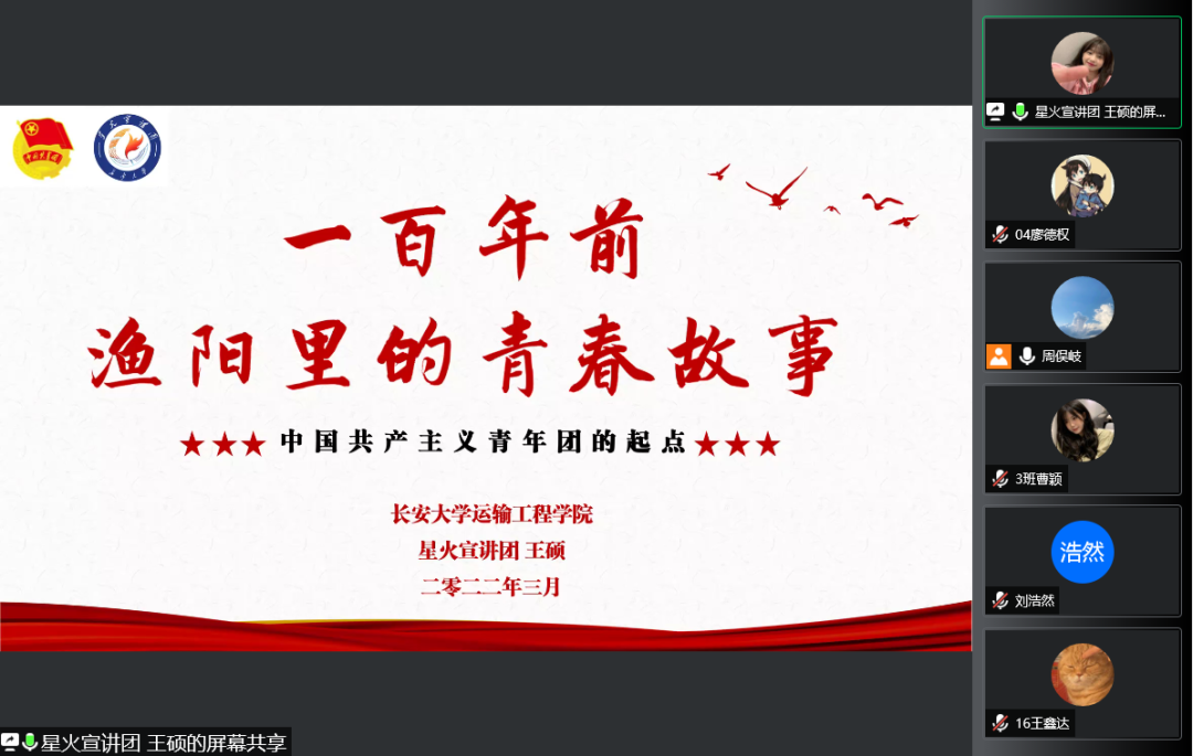 2022年4月7日晚19点,91视频 第十四期青马班在线上成功举办了”喜迎建团100周年,争做新时代合格团员”主题教育活动,本次活动由周俣岐同学主持,第十四期青马班全体成员参加会议。