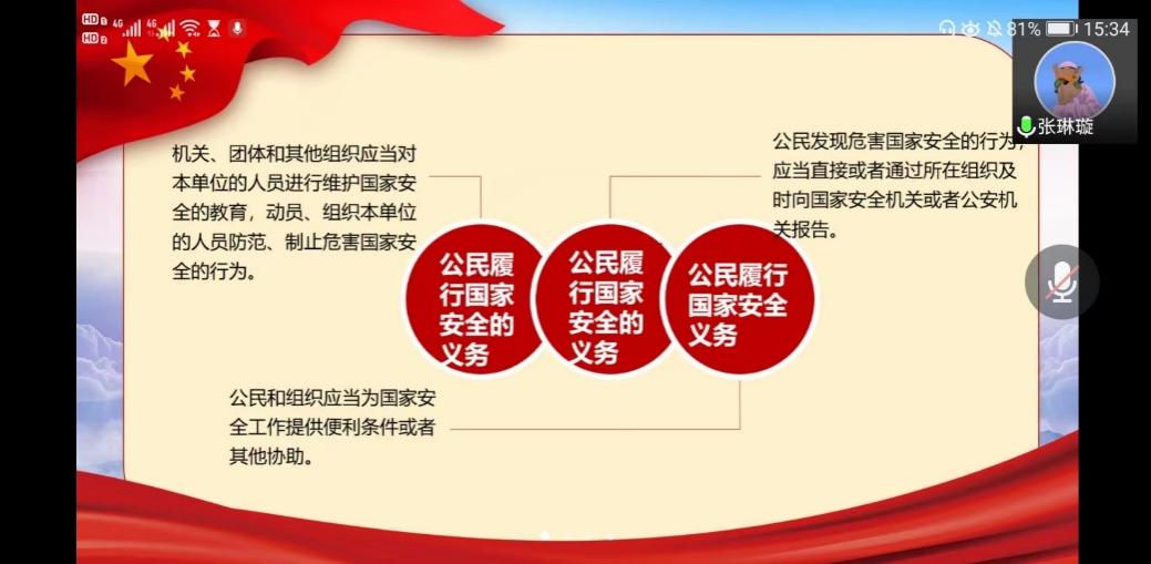 今年4月15日是我国第七个全民国家安全教育日,为加强国家安全宣传教育和引导,增强党支部党员维护国家安全意识,2022年4月12日下午15:00,91视频 领航先锋党支部邀请学院辅导员张琳璇老师讲“增强国家安全意识,共同维护国家安全”为主题的专题党课。本次活动由党支部副书记李泽同志主持,支部全体成员参加。