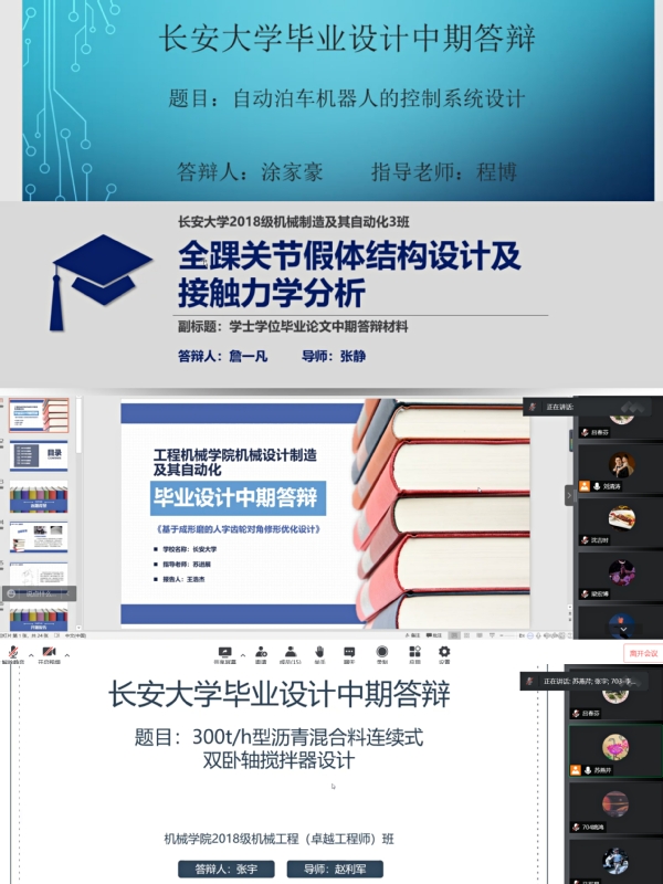 答辩围绕任务书、开题报告、外文翻译、过程记录表、中期检查表完成情况五个部分进行。首先,同学们讲述5-6分钟,讲述了课题的研究背景、研究内容以及研究进度。然后,老师提问4-5分钟,围绕任务书进度安排、开题报告撰写格式、外文翻译完整性、过程记录表内容以及中期检查表的完成情况进行提问,并提出了建设性的意见和建议。