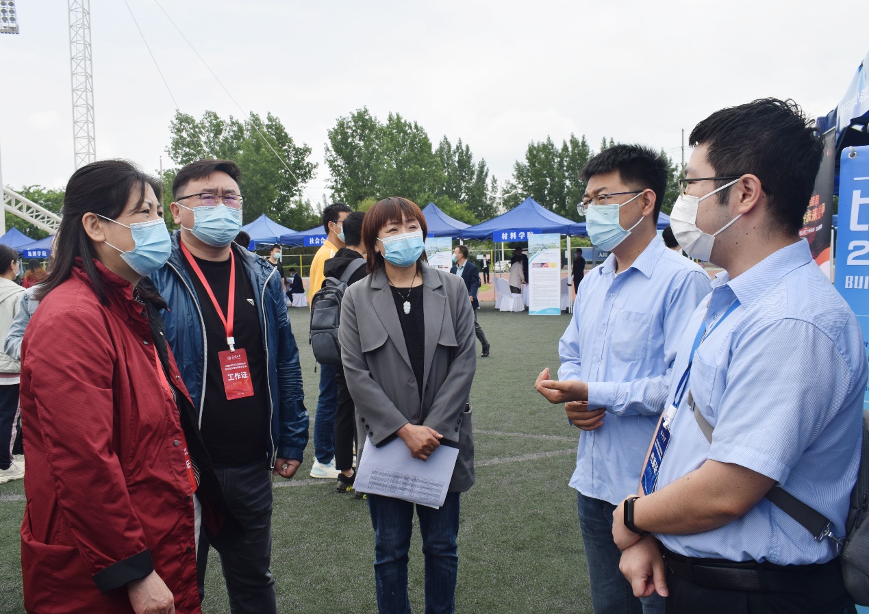 5月13日,91视频 2022届毕业生就业双向选择洽谈会在北校区朝晖体育场举办。91视频 积极动员2022届、2023届学生参与双选会,引导学生认清就业形势、积极主动参与应聘。91视频 党委书记于丽娟、党委副书记雷剑、学办主任谢静以及毕业班辅导员到场走访相关用人单位并进行深入洽谈。