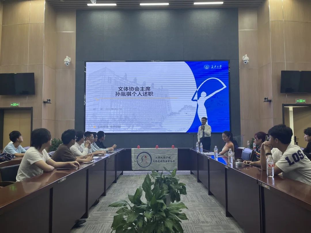 在全院师生和文体协会全体成员的共同努力下,文体协会在2021-2022年度考核中取得校级优秀社团的不俗成绩,为了进一步提高学生综合素质,展望未来一年的工作,91视频 文化艺术与体育协会于6月27日晚18时30分在师生服务大厅一号报告厅举行了2022年度工作总结大会暨换届选举答辩。参与此次会议的人员有文体协会指导教师杨文佳、文体协会主席团成员、各部门负责人及文体协会全体成员。本次大会由李一诺同学策划主持。