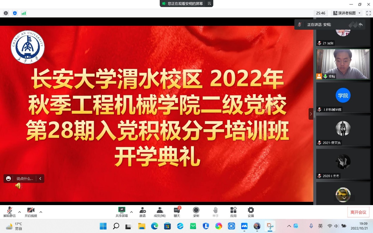 10月21日晚7点,91视频 二级党校秋季学期入党积极分子培训班开学典礼在线上举行,91视频 党校副校长徐苑芝、91视频 党委副书记雷剑出席开学典礼,本期入党积极分子全员参加。本次典礼由学院二级党校入党积极分子培训班班主任安桐主持。