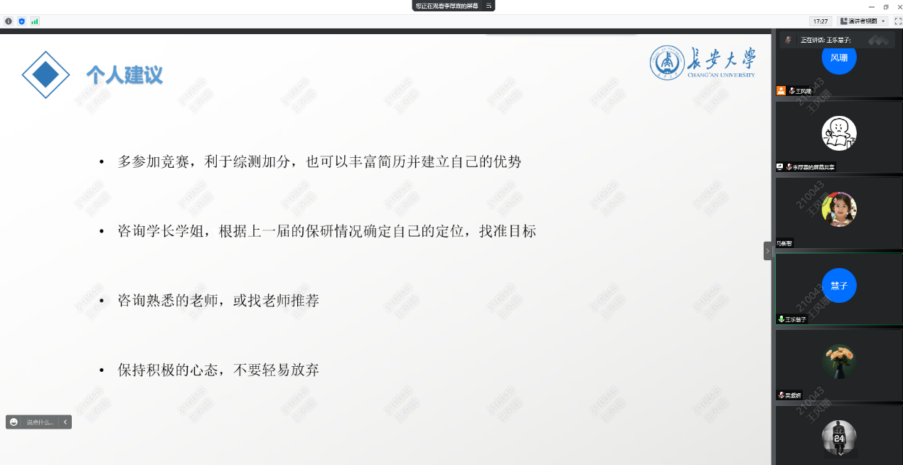 王乐慧子针对保研过程中的具体细节进行了分享,强调了大学期间提前做好规划的重要性,提醒有保研意向的同学尽早准备。