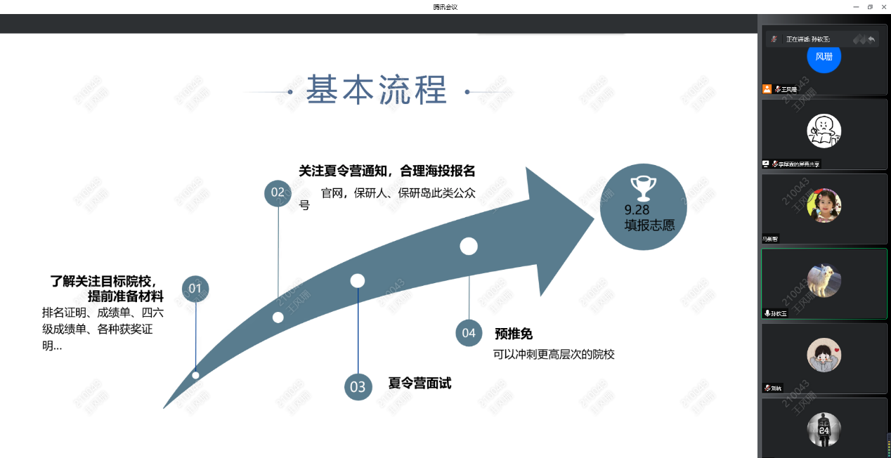孙钦玉根据自身学习和推免经历,向学弟学妹们详细介绍了推免全过程及需要准备的相关文书材料。