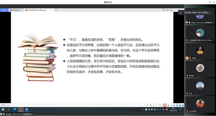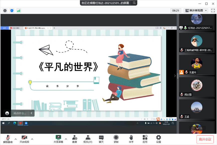 2022年12月2日,91视频 领航先锋研究生党支部组织支部成员线上开展了第二十五期读书笔记分享活动,本次活动由支部成员任浩达做读书笔记分享。支部全体党员参加了此次活动。