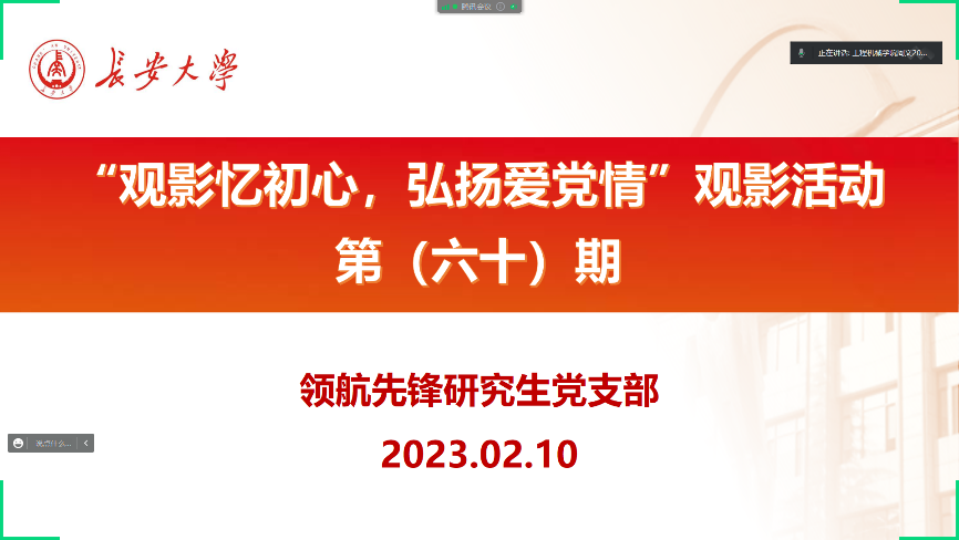 2023年2月10日,我院领航先锋研究生党支部组织支部成员线上观看《奋斗 新的伟业》系列节目(四):文化自信 凝心聚力。