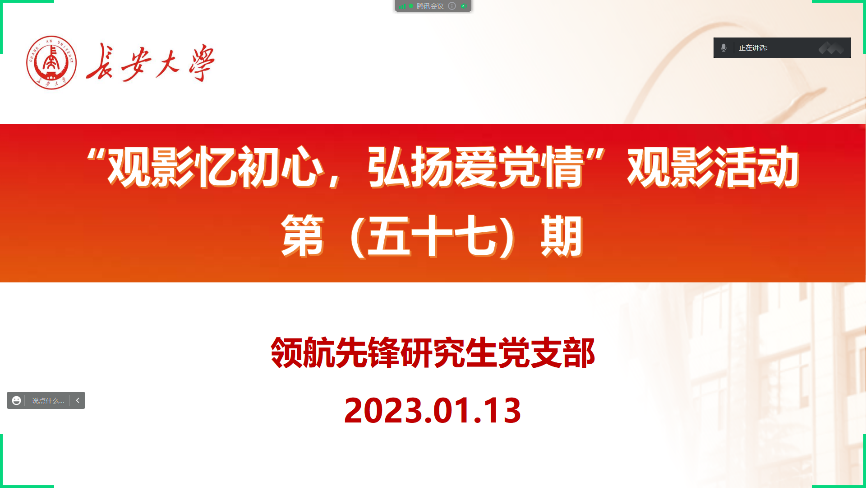 2023年1月13日,我院领航先锋研究生党支部组织支部成员线上观看《奋斗 新的伟业》系列节目(二):中国道路 复兴蓝图。
