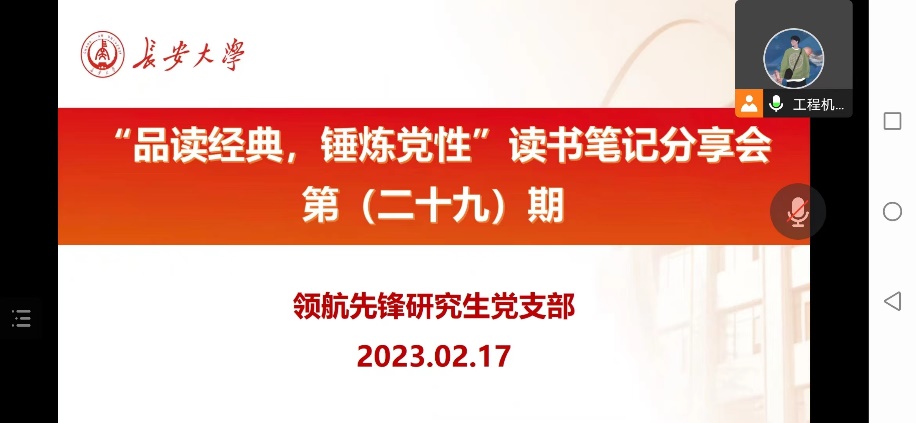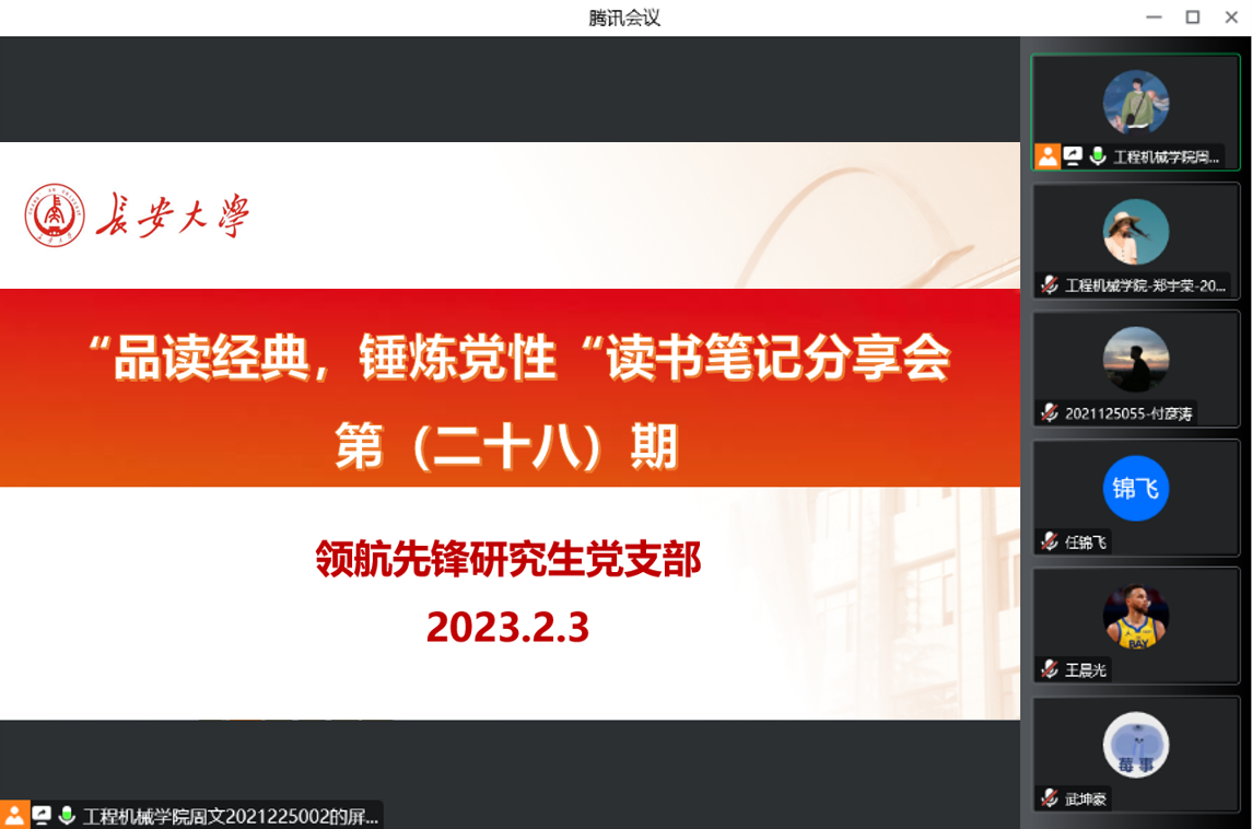 2023年2月3日,91视频 领航先锋研究生党支部组织支部成员线上开展了第二十八期读书笔记分享活动,本次活动由支部成员李向杰和李明臻做读书笔记分享。