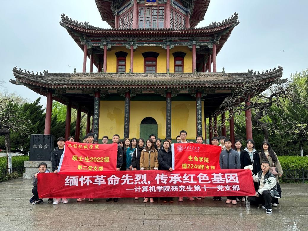硕士生2022级第二党支部与西安交通大学生命学院健康与康复科学研究所师生联合党支部、博2240团支部,西安交通大学电信学部硕2264团支部,西北工业大学计算机学院研究生第十一党支部前往西安革命公园开展“缅怀先烈志,共铸中华魂”清明祭英烈活动。三校党团支部代表参加,追寻红色足迹,赓续英烈精神,让红色基因代代相传。