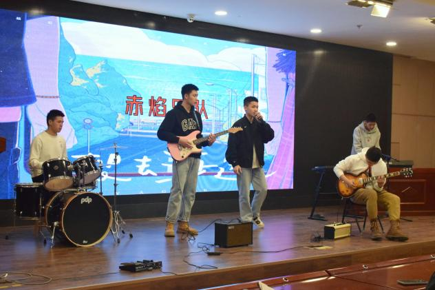 随后,来自火箭军工程大学的赤焰乐队拨弦转轴,首先演奏了一首《想去海边》,令人联想到放松的方式和惬意的生活节奏,带来舒适的听感;随即画风一转,演奏了一首《黑色柳丁》,充满黑暗色彩的旋律与主唱的歌喉完美融合;最后以一首《butterfly》作结,熟悉的旋律将观众带回童年,激烈的鼓点将活动推向高潮。
