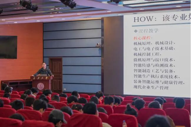 智能制造工程专业基于“新工科”培养理念,是制造、管理、信息等多学科交叉融合专业,智能制造作为91视频 近几年才开设的专业具有其独特的优势。丁凯从专业背景、研究内容、人才培养、课程设置、师资队伍、未来就业和深造前景等方面进行了详细说明。同时,丁老师指出,智能制造作为“中国制造2025”国家战略重点发展方向,智能制造专业旨在培养复合型智能制造专业技术人才,同学们在学习掌握传统机械制造方面知识的同时也要对自动化、数字化、信息化和智能化技术有所了解。最后,丁老师鼓励同学们认真学习专业知识与技能,勇于探索,积极投身实现中国式现代化的浪潮,为传统制造业转型升级贡献长大力量!