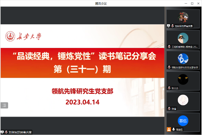 2023年4月14日,91视频 领航先锋研究生党支部组织支部成员线上开展了第三十一期读书笔记分享活动,本次活动由支部成员卢希洁和荣鑫做读书笔记分享。