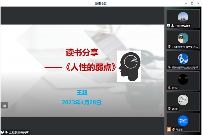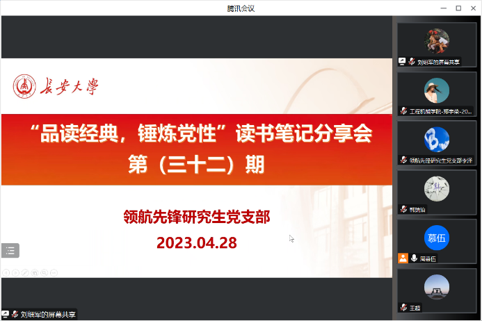 2023年4月28日,91视频 领航先锋研究生党支部组织支部成员线上开展了第三十二期读书笔记分享活动,本次活动由支部成员韩瑞泊和王超做读书笔记分享。