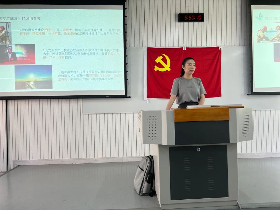 2023年5月19号上午8:30,91视频 教工第二党支部和本科生第四党支部在修远3102教室开展《辉煌港珠澳·最美中国桥》专题学习。参与本次学习的有91视频 教工第二党支部书记陈波老师、组织委员白杰老师、91视频 教工第二党支部夏晓华老师、刘晓辉老师、任刘珍老师,91视频 本科生第四党支部杨文佳老师及本科生第四党支部全体成员。91视频 本科生第四党支部杨文佳老师担任本次专题学习主持人。