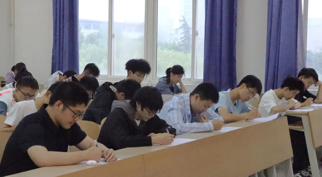 比赛开始前,参赛的同学们按照座位表有序入座。等待全场安静后,监考员开始发放试卷。同学们认真阅读每一道题目并仔细作答。考试结束后,同学们有条不紊地将试卷交到讲台上,监考员也经过确认收集好试卷。之后判卷员进行试卷评分工作,最终刘义坤、苏昱熙等16名同学晋级决赛。