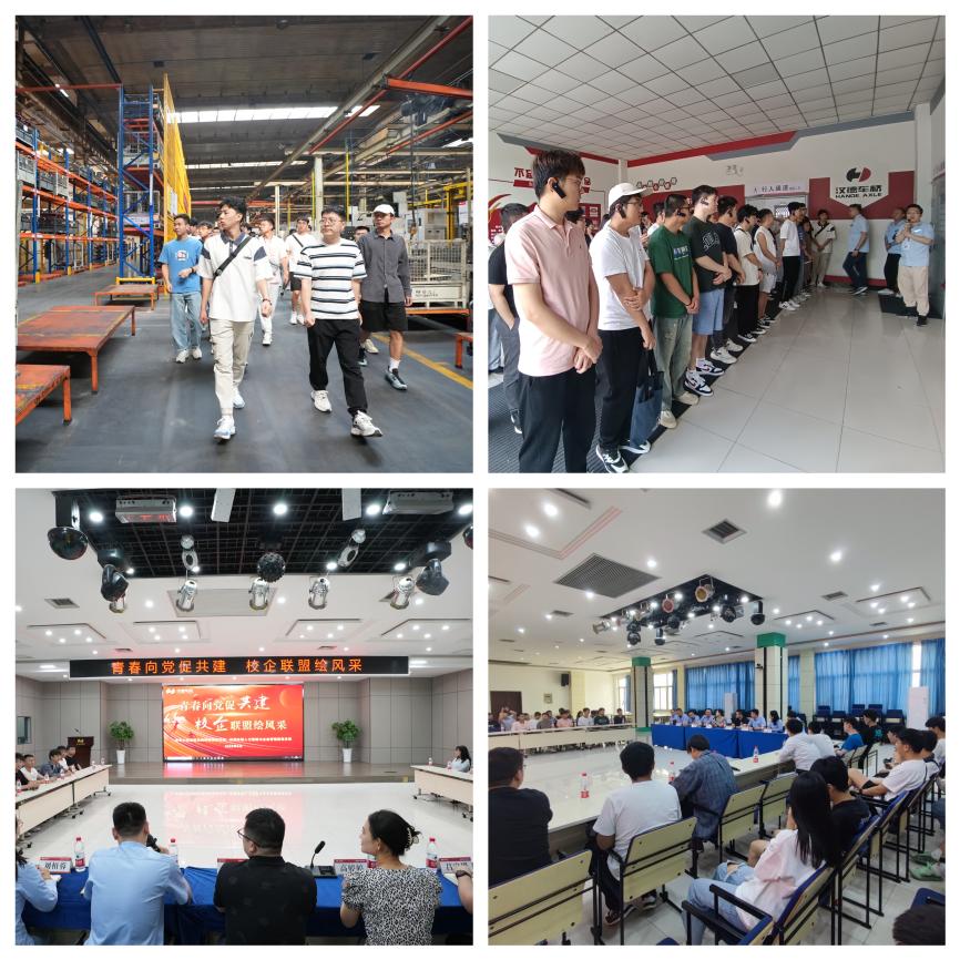 在汉德车桥,党支部成员参观了智能化生产车间和试验中心,近距离与车桥接触,进一步了解企业发展史和智能制造情况。参观结束后,双方就深入校企合作开展座谈。