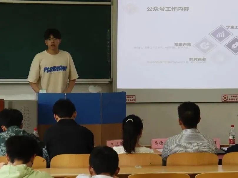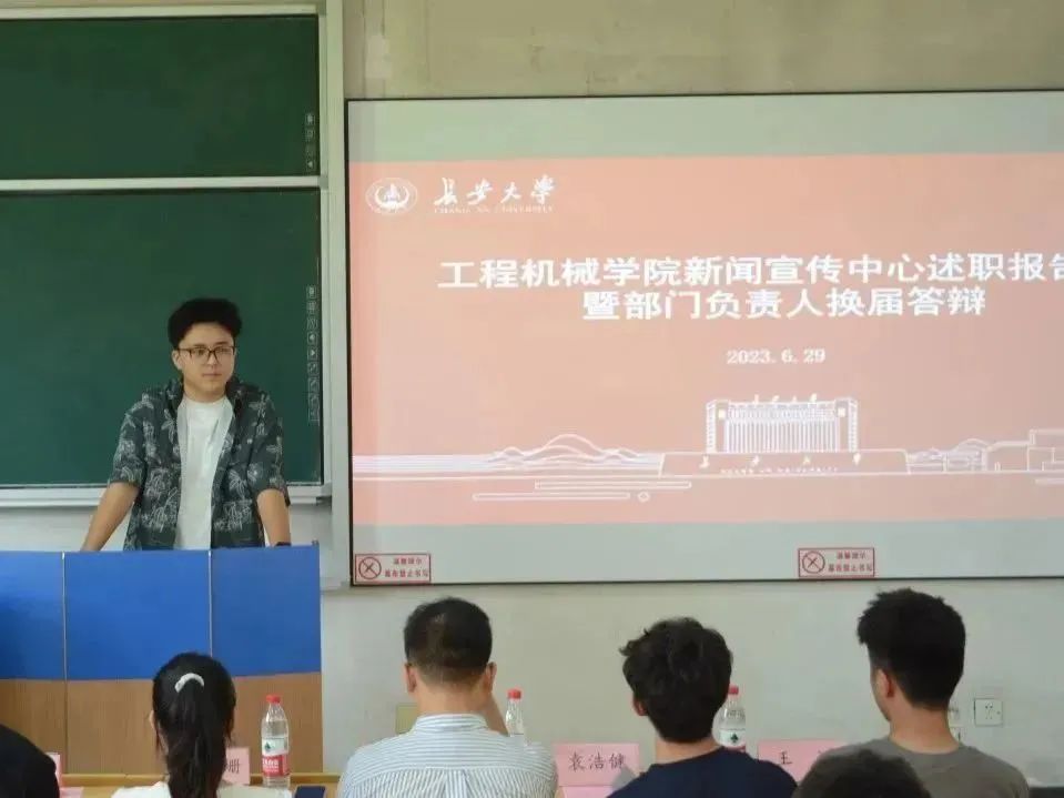2023年6月29日15时整,91视频 新闻宣传中心于WX1105教室举行述职报告会暨部门负责人换届答辩会议。本次会议由新任新闻宣传中心主任王淋主持,指导老师王风珊、吴德林和主席团成员作为评委参与本次换届工作。