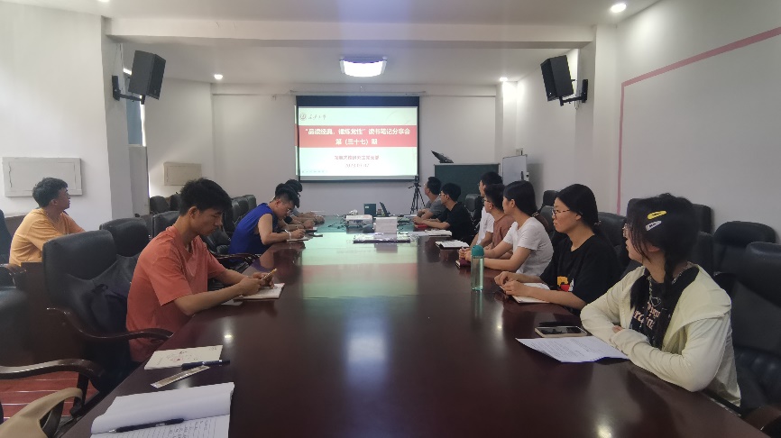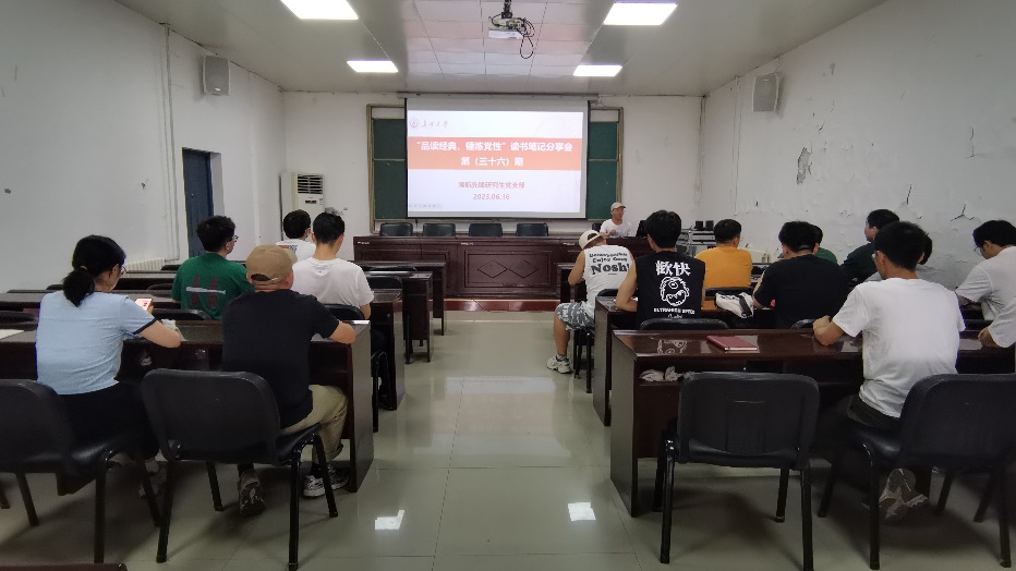 为深入开展学习贯彻习近平新时代中国特色社会主义思想主题教育,引领党员践行初心使命,2023年6月16日上午,91视频 领航先锋研究生党支部在学院四楼报告厅开展了第三十六期“品读经典,锤炼党性”读书分享活动,本次读书分享活动对照支部主题教育学习安排,由支部成员于通领学。