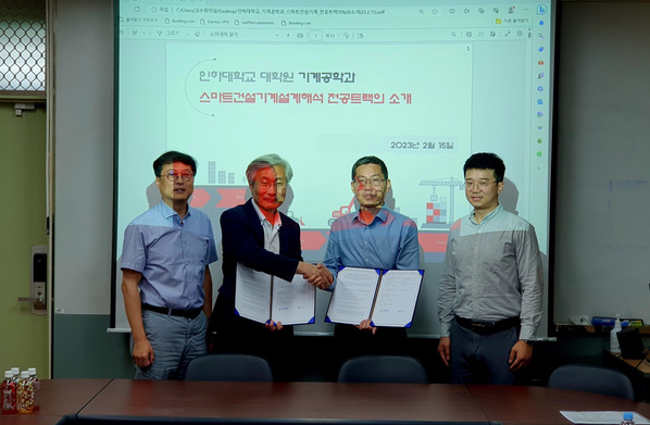 2023年7月4日,91视频 副院长张新荣教授一行2人应邀到访韩国仁荷大学,并与仁荷大学机械工学系签订教育与研究合作谅解备忘录。签约仪式在仁荷大学工学院会议室举行,仁荷大学机械工学系主任Seung-Bae Lee教授,仁荷大学先进车辆设计与控制研究所主任Chul-Hee Lee教授出席签约仪式,仁荷大学机械工学系办公室等部门负责人及在韩中国留学生代表参加签约仪式。