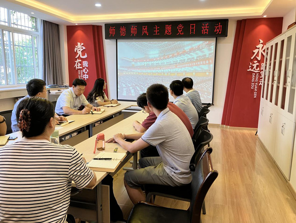 支部书记贺朝霞带领大家学习了习近平总书记致全国优秀教师代表的信,并观看了视频《习近平的教师情》。全体党员认真体会习近平总书记的尊师重教情怀,以及对广大教师提出的殷切期望。