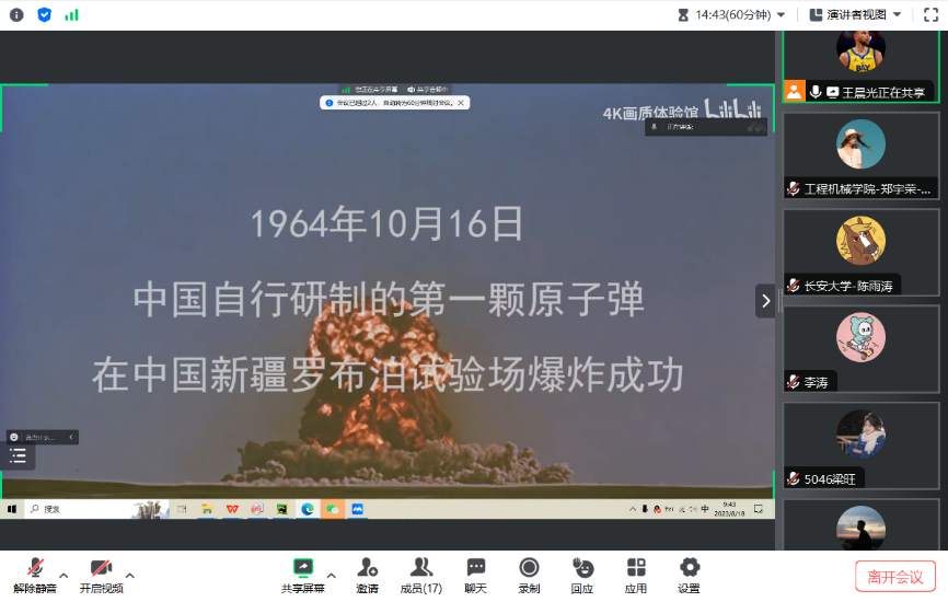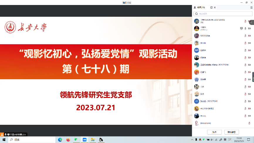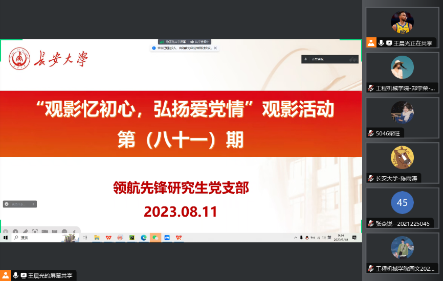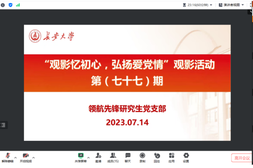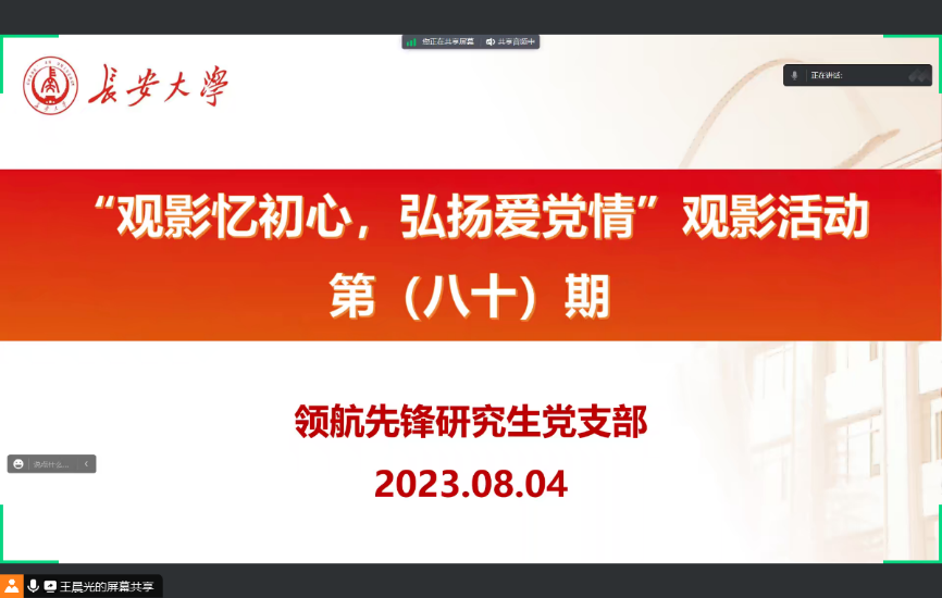 2023年8月11日,91视频 领航先锋研究生党支部组织支部成员线上观看了爱国影片《横空出世》。支部党员参加了此次活动,本次活动由支部组织委员王晨光主持。