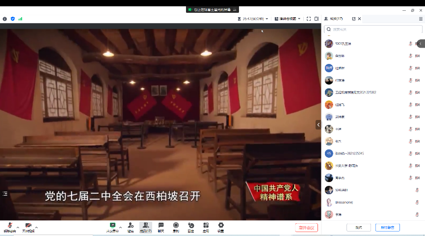 为引导支部党员进一步坚定理想信念,提升思想境界,切实增强党组织的凝聚力和战斗力,2023年7月21日,91视频 领航先锋研究生党支部组织支部成员线上观看了共产党员网推出的微视频《精神的追寻——西柏坡精神》。支部党员参加了此次活动,本次活动由支部组织委员王晨光主持。