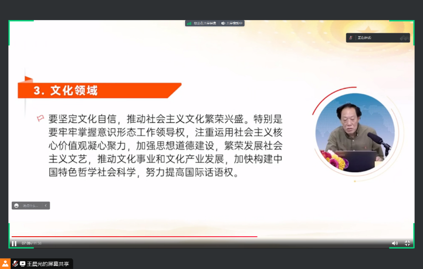 2023年8月4日,91视频 领航先锋研究生党支部组织支部成员线上观看了【深入开展学习贯彻习近平新时代中国特色社会主义思想主题教育】第三讲——由中国社会科学院政治学研究所政治文化研究室主任周庆智专题解读——《全面学习领会习近平新时代中国特色社会主义思想的科学体系》。支部党员参加了此次活动,本次活动由支部组织委员王晨光主持。