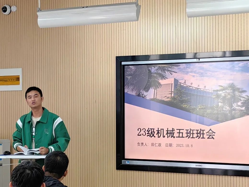 为传达学校相关文件要求,保证班级活动顺利开展,10月8日,91视频 2023级机械5班召开了第一次班会。本次活动由班长田仁政、团支书乔佳鹏等班委组织举办,2023级辅导员左意老师和全班同学参加。