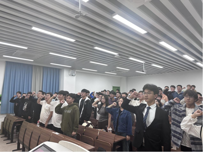 随后,各部门相继表演了精心排练的节目并进行了自我介绍,现场还举行了“外星语”造句游戏,各部门成员积极参加,将现场氛围推向了高潮。最后,由青年志愿者服务队主席段宇乐同学带领全体成员进行志愿者誓词宣誓,活动在同学们庄严的誓词中顺利结束。