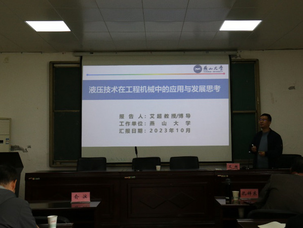 随后,孔祥东教授在学院四楼报告厅进行了题为《智能装备机电液一体化元件及系统创新团队建设报告》的演讲。学院全体教师以及研究生参加了讲座。他从燕山大学发展现状、团队建设基本情况、团队建设目标、团队建设思路与措施等方面进行了深入的分析和讲解,为91视频 在科研团队建设提供了宝贵的建议。接下来艾超教授做了题为《液压技术在工程机械中的应用与发展思考》的报告。