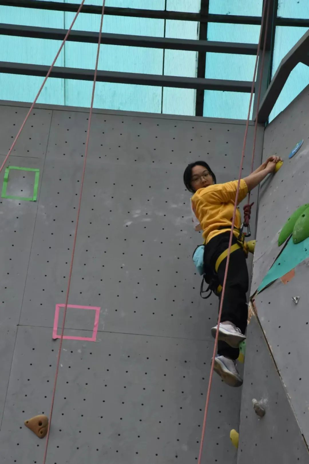经过了一天激烈地角逐,在女子组难度赛中,2023级新生王一涵同学仅用时2分32秒就攀到顶峰,以绝对实力斩获第一名;同时,王一涵同学在女子速度赛决赛中以17.55秒的优异成绩碾压对手,拿下女子速度赛第一名。值得一提的是,王一涵同学是唯一一位在女子难度赛中攀顶的选手,也是91视频 的第一位双冠获得者。女子速度赛四强赛中,陈思盈同学以26.29秒的成绩位列第五,也值得我们称赞。