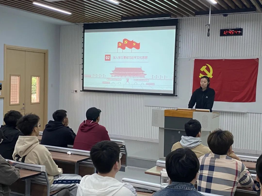 2023年10月31日中午12:40,91视频 本科生第四党支部于WX3102教室开展深入学习贯彻习近平文化思想主题学习。会议由支部书记杨文佳主持,本科生第四党支部全体成员参与。