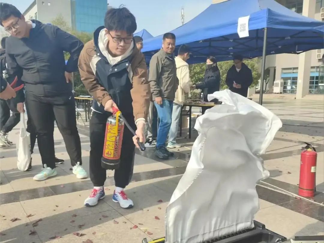 最后,消防员向大家讲解了灭火器的使用方法。同学们认真观摩,依次上场学习并使用灭火器顺利完成了灭火任务。至此,本次消防安全线下演练活动圆满结束。