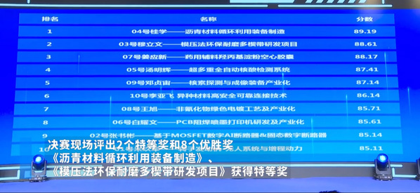 11月24日下午,在中共台州市委、台州市人民政府主办的第六届台州市“500精英”人才系列创业大赛总决赛上,由91视频 马登成副教授团队联合中霖交通科技集团、山东高速集团及山东沂蒙交投集团共同研发的“沥青材料循环利用装备制造”项目斩落桂冠,荣获大赛总决赛特等奖。