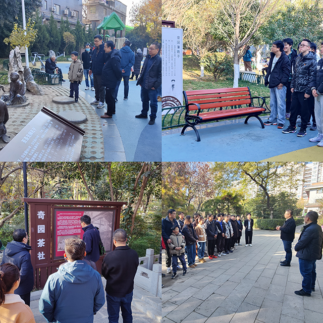 在矗立着烈士“小萝卜头”雕塑与中共西安情报处交通联络站奇园茶社旧址旁,大家静默肃立,追思和学习他们的革命精神与崇高风范。