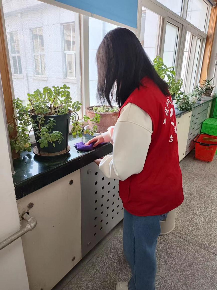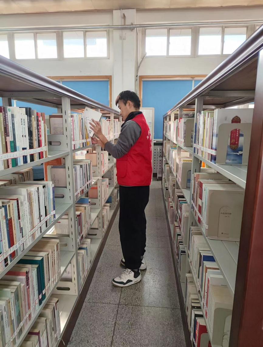 志愿者们在图书馆内各个角落不断穿梭,他们用细心和耐心打扫每一个角落。负责整理书架的志愿者则聚焦于眼前书架上的图书,他们一本一本地整理书籍,清除灰尘,使得书本焕然一新。