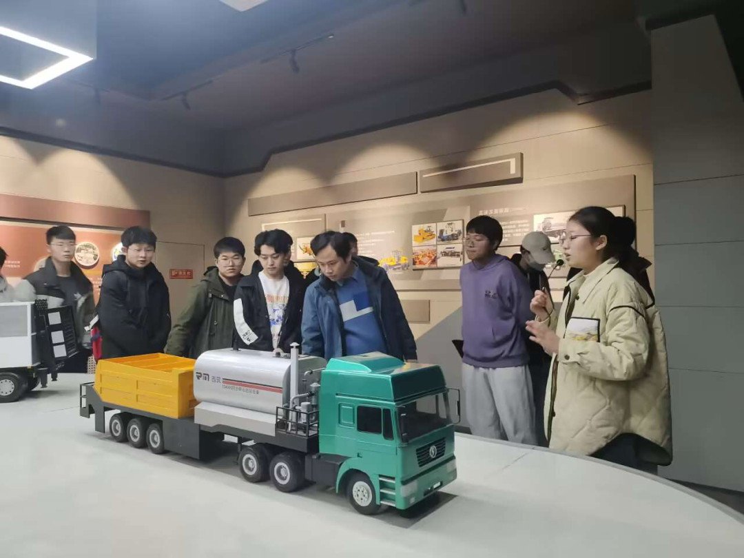 首先,参观的是智能交通与工程机械展厅,通过对筑路类机械类文物以及盾构机等一批国之重器的展示,体现了工程机械的发展演变与技术革新。参观期间,梁佳老师指出,每个工程机械背后都有机械、电子和液压等技术支撑,机械电子工程专业在工程机械领域发挥着不可替代的作用。在听取梁佳老师的介绍后,同学们更进一步了解了自身专业领域。