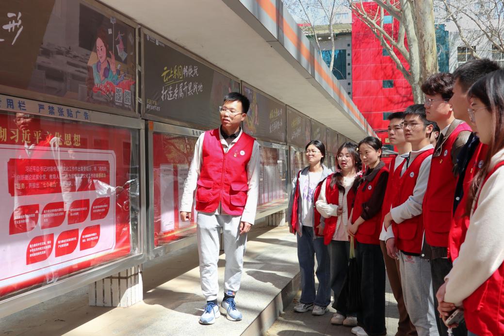 清扫活动结束后,组织委员王晨光领学文化展板中党的基本知识,对习近平文化思想等内容进行了拓展学习。