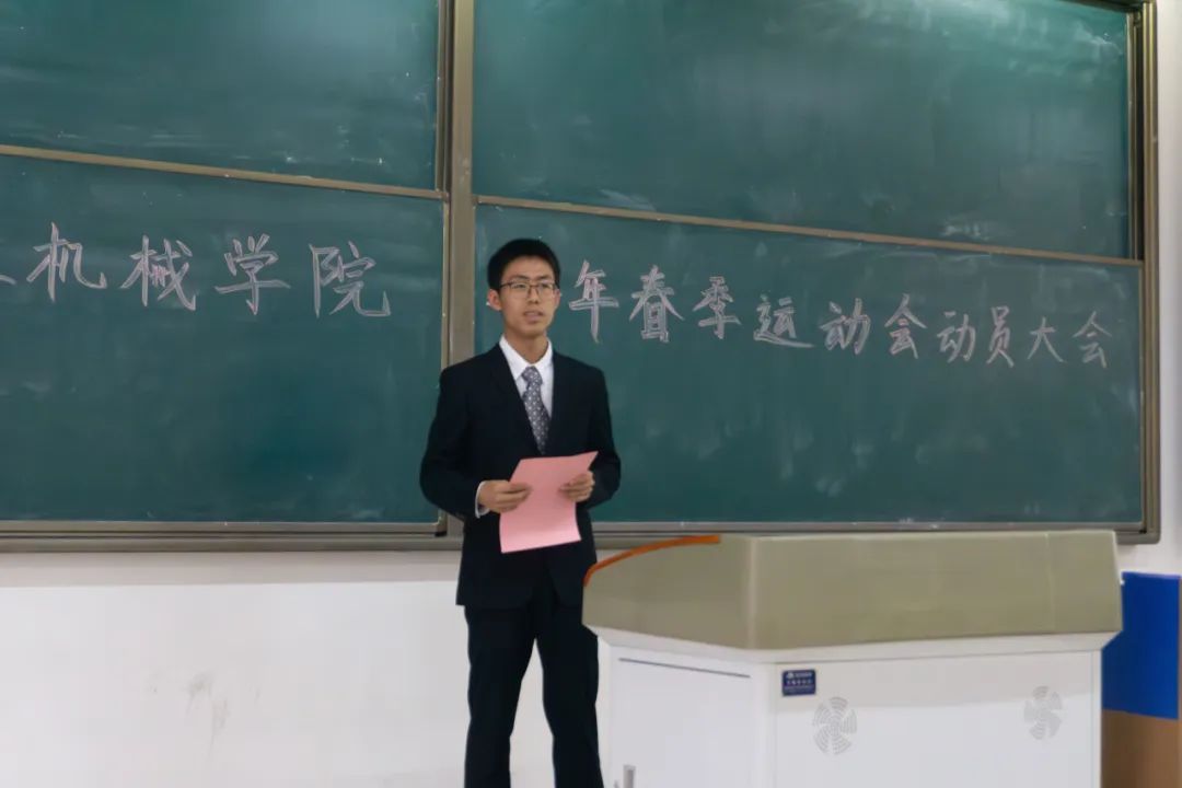 “严格遵守各项比赛规则,以饱满的热情积极参与比赛,发扬顽强拼搏的体育精神,争做永不言败的机械学子……”。会议在同学们洪亮的宣誓声中落下帷幕,会后两位文体协会指导老师还向大家嘱咐了运动会比赛的注意事项,相信大家的热情、信心和努力都会在不久的运动会赛场上得到认可和掌声,机械学子是最棒的!