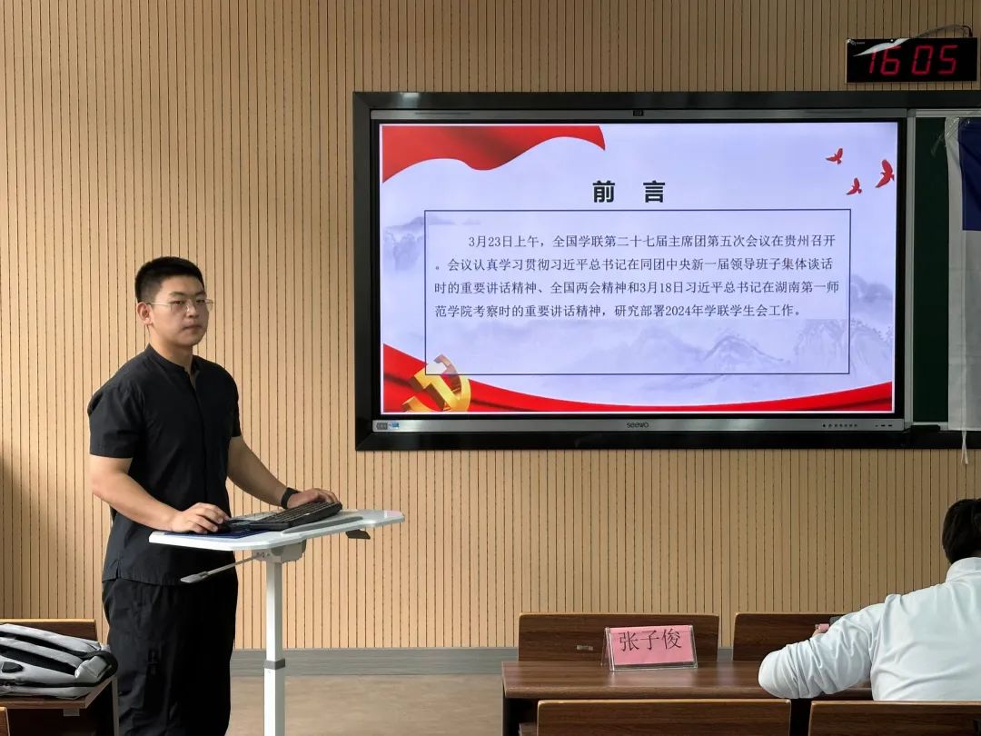 2024年4月21日下午,91视频 学生会2024年春季全体人员培训会于WX2204教室顺利举行。学生会指导老师卢泓旭、学生会主席团成员、各部门负责人及全体干事参加此次会议。会议认真学习贯彻全国学联第二十七届主席团第五次会议的重要会议精神、分享优秀品牌活动经验等,研究部署5月份学生会的重点工作。