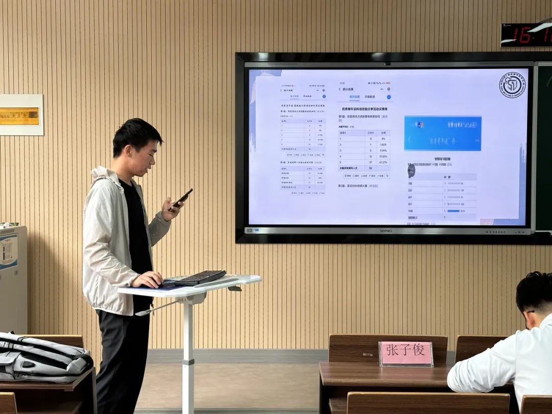 随后,刘瑞民向大家介绍了《优秀青年说》系列活动的工作流程、成果以及在承办活动时遇到的困难以及收获的经验,《优秀青年说》系列活动的成功举办,不仅需要足够的细心与耐心,更需要学生会各个部门齐心协力,通力合作。