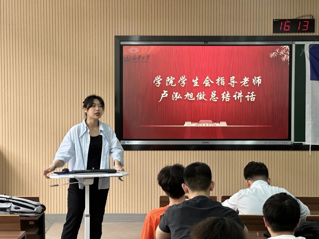 最后,由学生会指导教师卢泓旭进行总结讲话,并对学生会未来的重点工作进行部署。她强调,学生会各部门成员要做好联络工作,不仅要及时反馈学生需求,更好地为学生提供服务,更要时常审查自身,做到真正意义上“为同学做实事”。在今后的工作中学会协同合作,共同面对工作中的难题,在学习中不断进步,为学院、学校发展添砖加瓦。