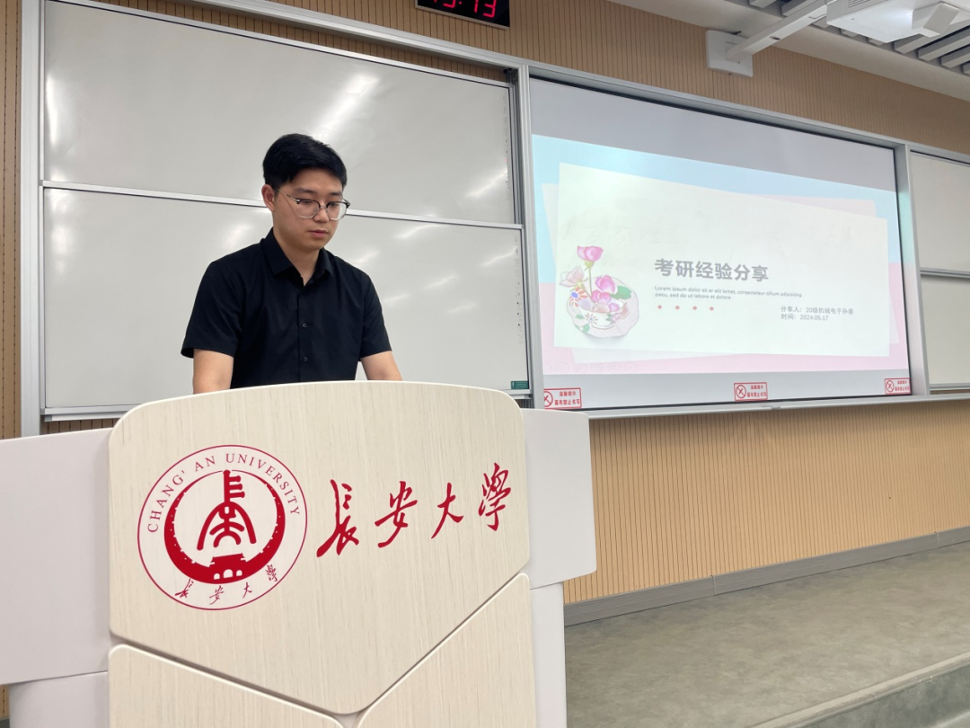 为帮助同学们明确考研方向、熟悉备考流程、提高考研能力,充分发挥朋辈互助,示范引领作用,2024年5月17日,91视频 2022250014、2023250014、2023250016三个班在WX2104教室联合组织开展“考研与保研”经验交流会,邀请91视频 今年成功考取清华大学的孙睿和保送91视频 的张宇洋进行经验交流。本次交流会由丛卓红老师主持,全体同学参加。