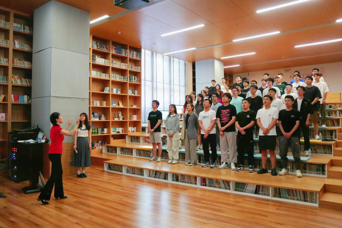 参观结束后,全体党员来到西影大厦艺术阶梯教室,在延安干部培训学院讲师、西影集团党课中心主任刘婧的带领下,共上“团结奋斗,声动天地”音乐党课。从《国际歌》唤醒中国人民救亡图存之志,及至《黄河大合唱》唱响中华民族坚强不屈之魂,刘婧创造性地将音乐艺术与革命历史融为一体,以史串歌,借歌颂史,讲述了红色歌曲背后的光辉历史与革命故事,指导大家满怀热情地合唱《军民大生产》等歌曲、朗诵《沁园春·雪》等诗歌,为全体党员带来了一堂形式新颖、感受深刻的音乐党课。