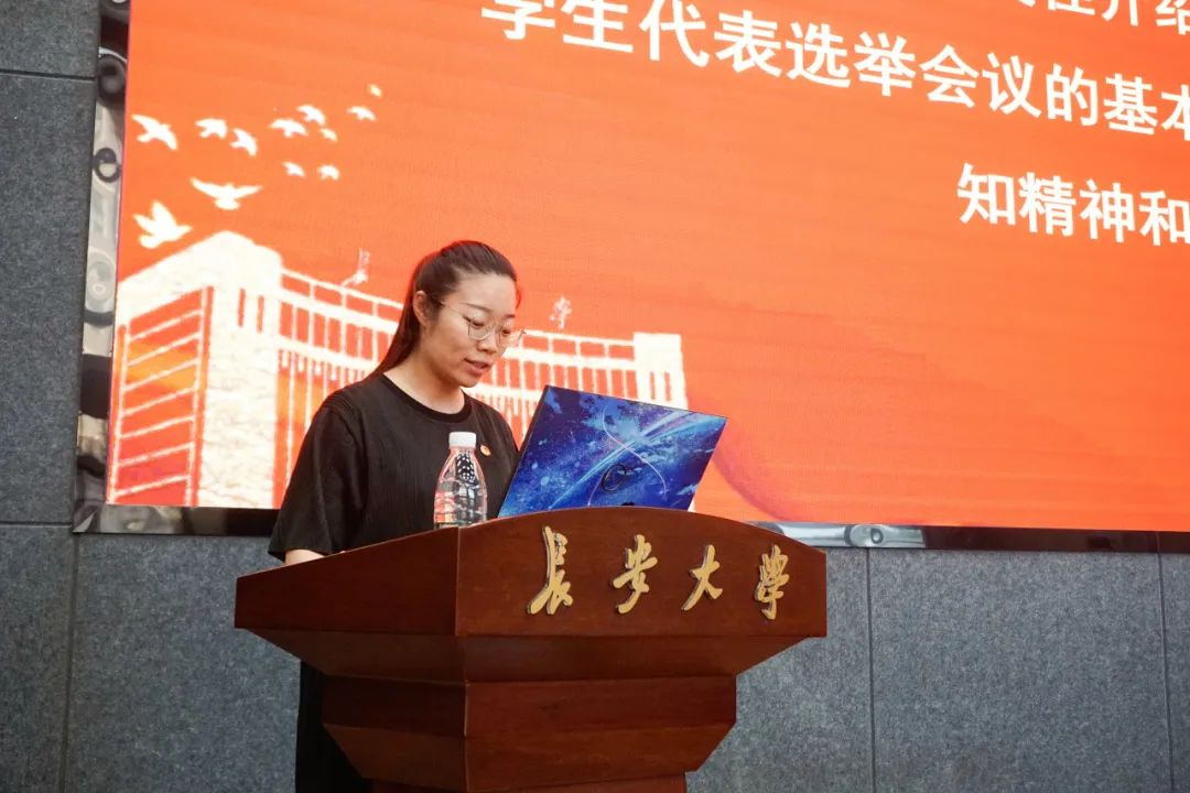 ▲ 由院团委副书记杨文佳介绍本次学代会基本情况