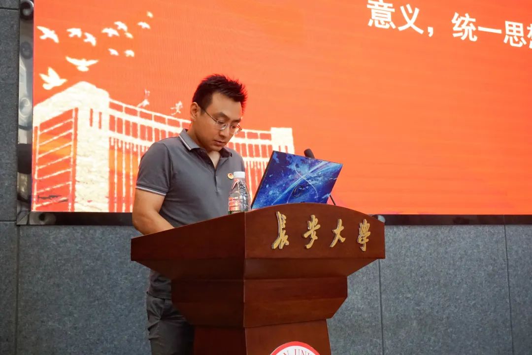 会议第三项,由院团委副书记杨文佳介绍学院第六次学代会基本情况,传达相关通知精神及要求。点明本次会议主题及主要任务,并在发言最后号召学院全体师生以实际行动迎接本次学代会的成功召开。